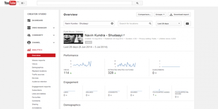 In our previous articles we discussed some tips for musicians about using social media for your advantage. Here we will evaluate a video - Navin Kundra - published by us on YouTube sometime back as we evaluate and discuss the benefits of using YouTube's statistics.